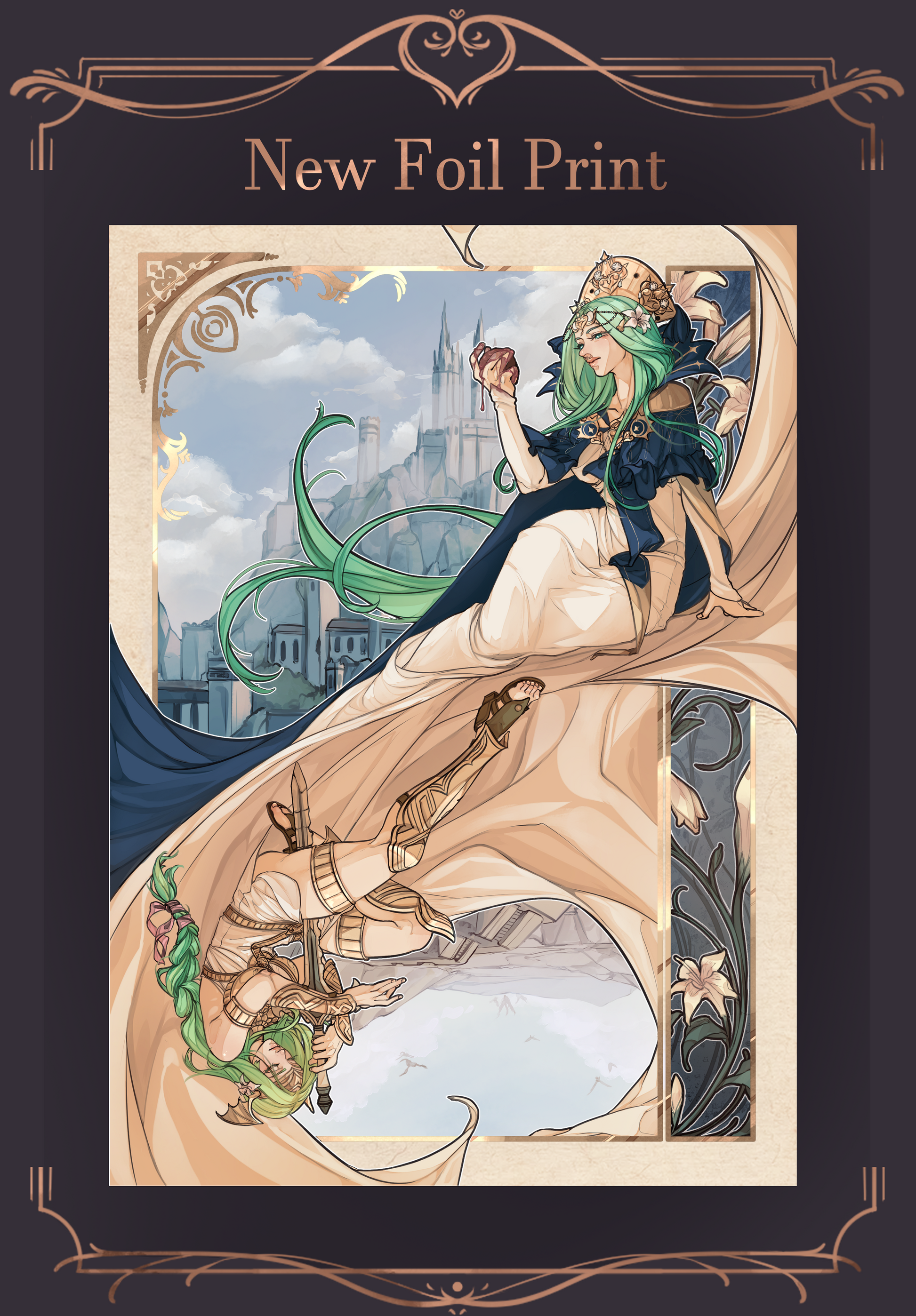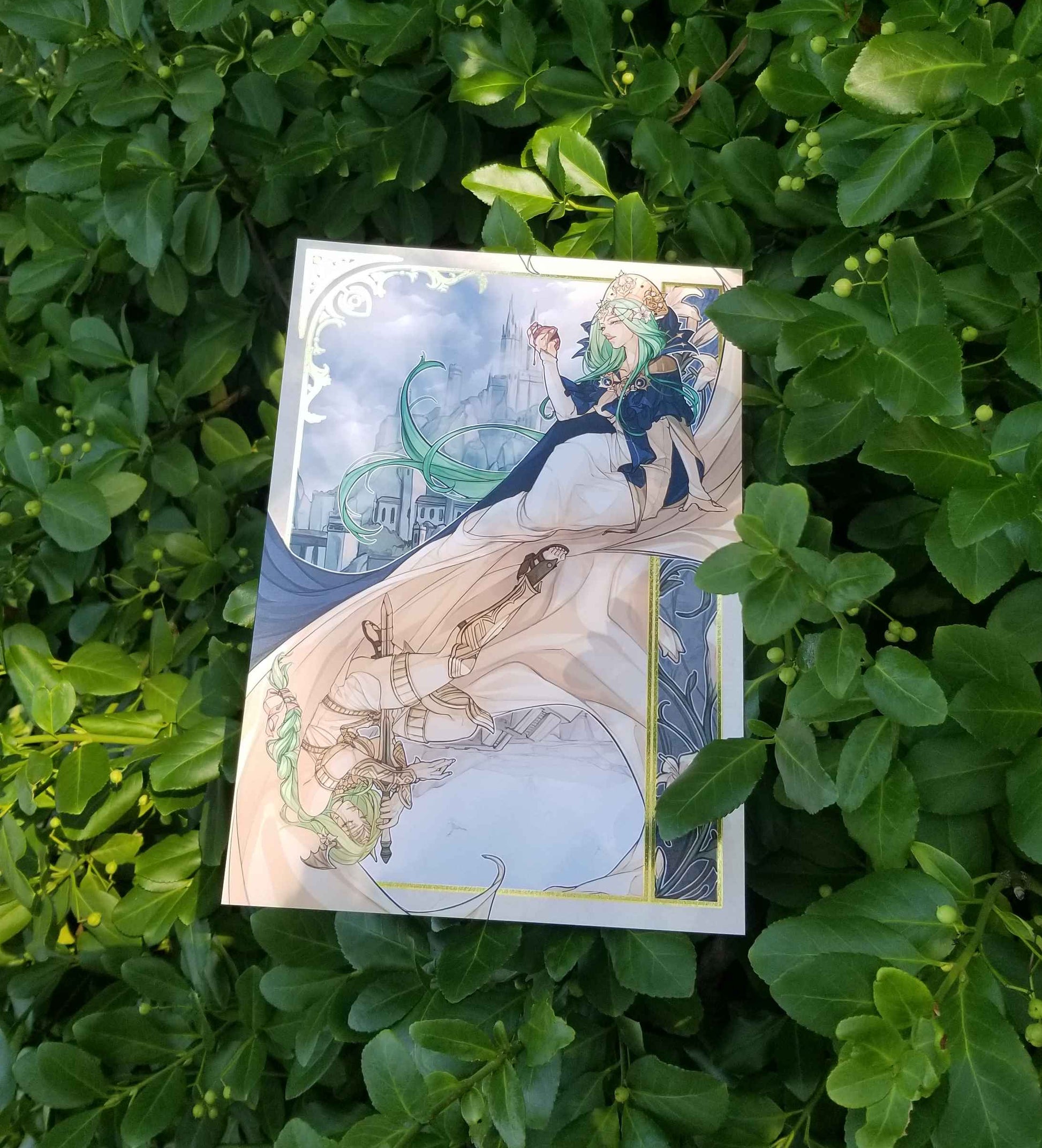 B5-size foil-stamped print featuring Seiros and Rhea from Fire Emblem Three Houses.